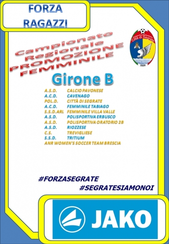 Il Comitato Regionale della Lombardia ha pubblicato i gironi di PROMOZIONE FEMMINILE. La nostra squadra è stata inclusa nel girone B.