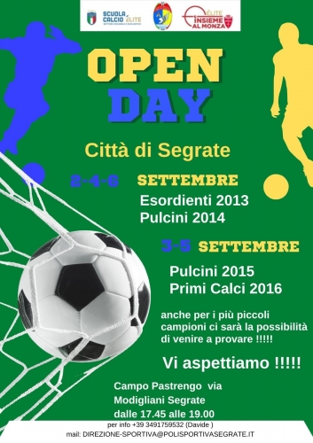 La Pol. D. Città di Segrate nell’ambito della preparazione per la nuova stagione sportiva 2024-2025 a grande richiesta propone nuovi open days nei giorni 2, 3, 4, 5 e 6 Settembre 2024.