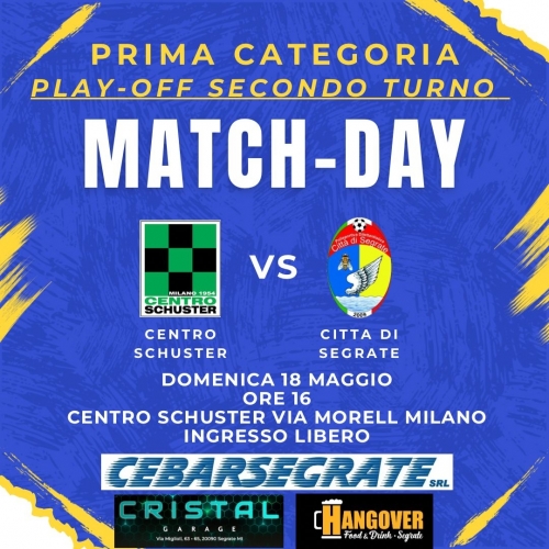 La compagine di Mr Malandrino è attesa in campo esterno dal Centro Schuster per il secondo turno dei PLAY OFF di Prima Categoria dopo avere superato brillantemente l'ostacolo del Sesto 2012 nel primo turno.