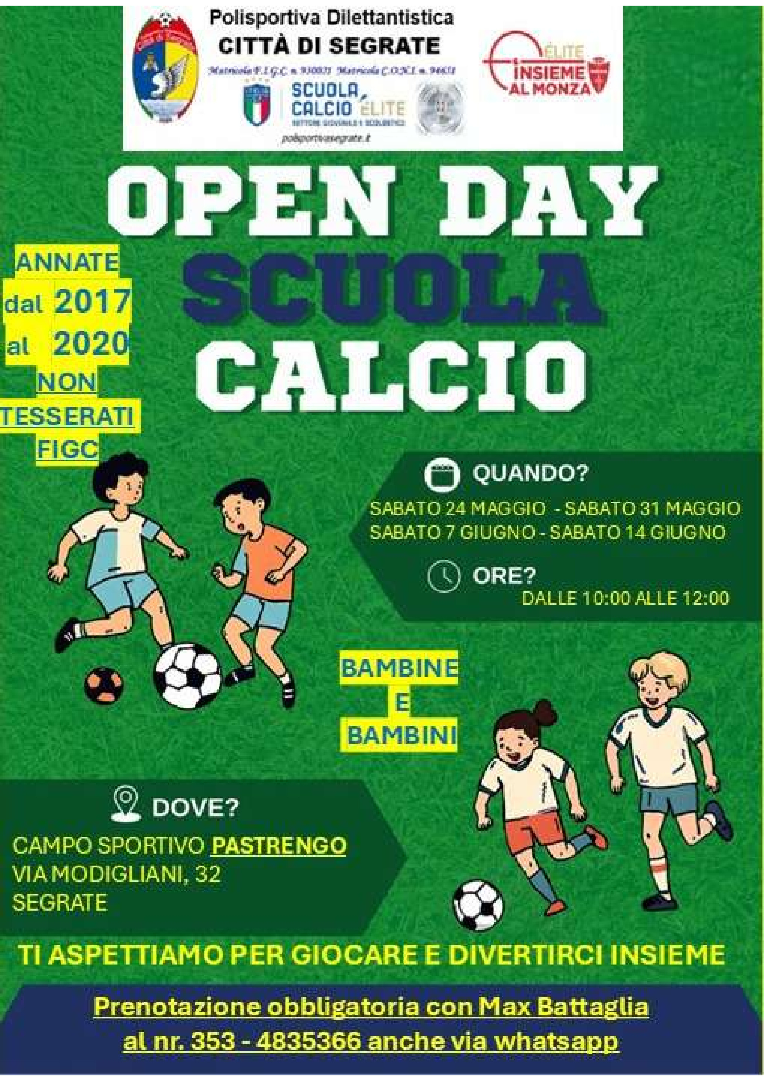 É’ tempo di open days per la scuola calcio! Annate 2017/2018/2019/2020.