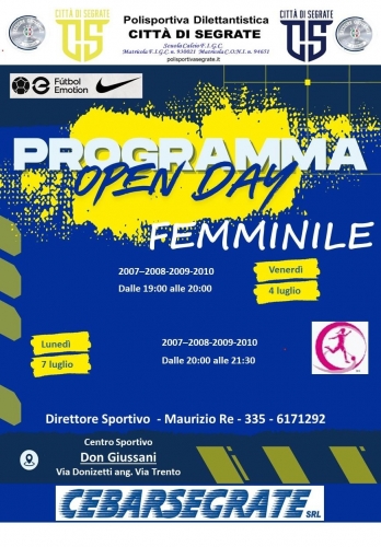 STAGIONE 2025-2026, OPEN DAYS FEMMINILE: PRONTO IL CALENDARIO